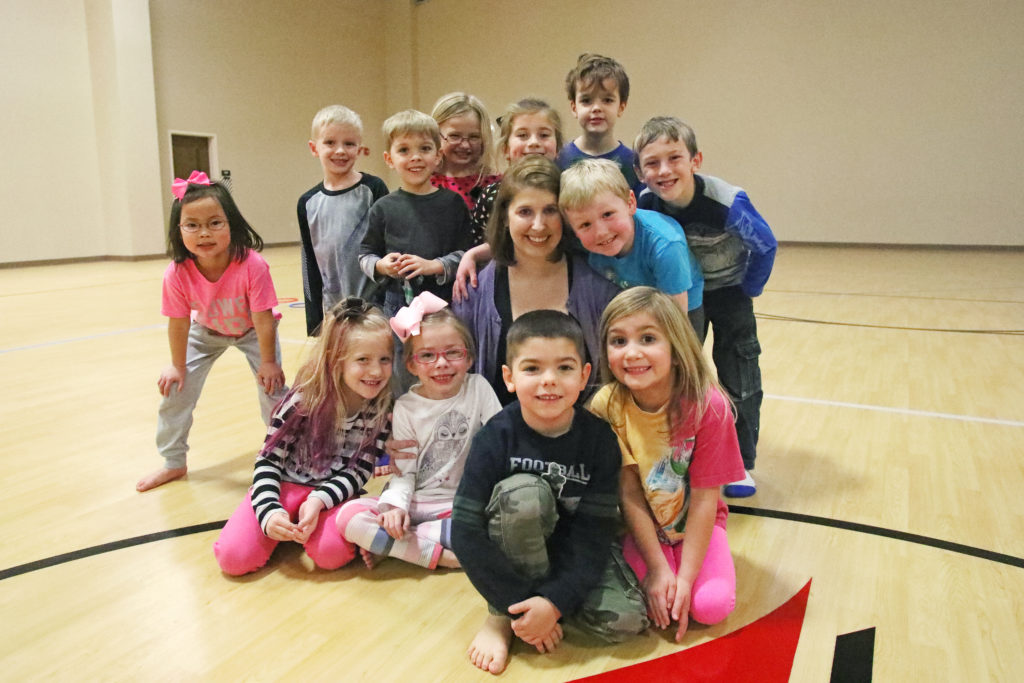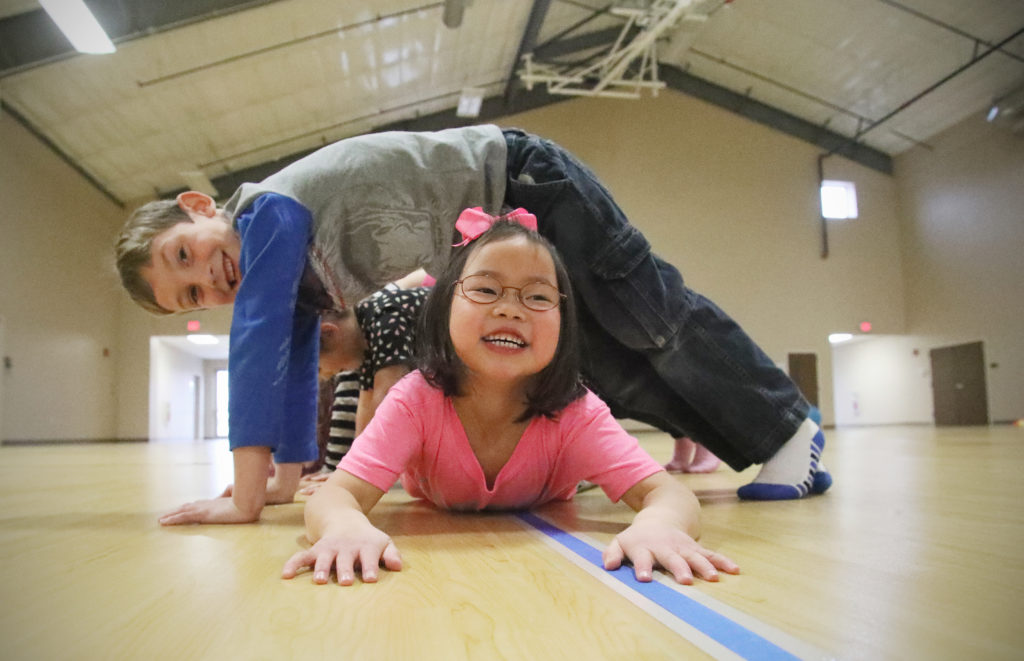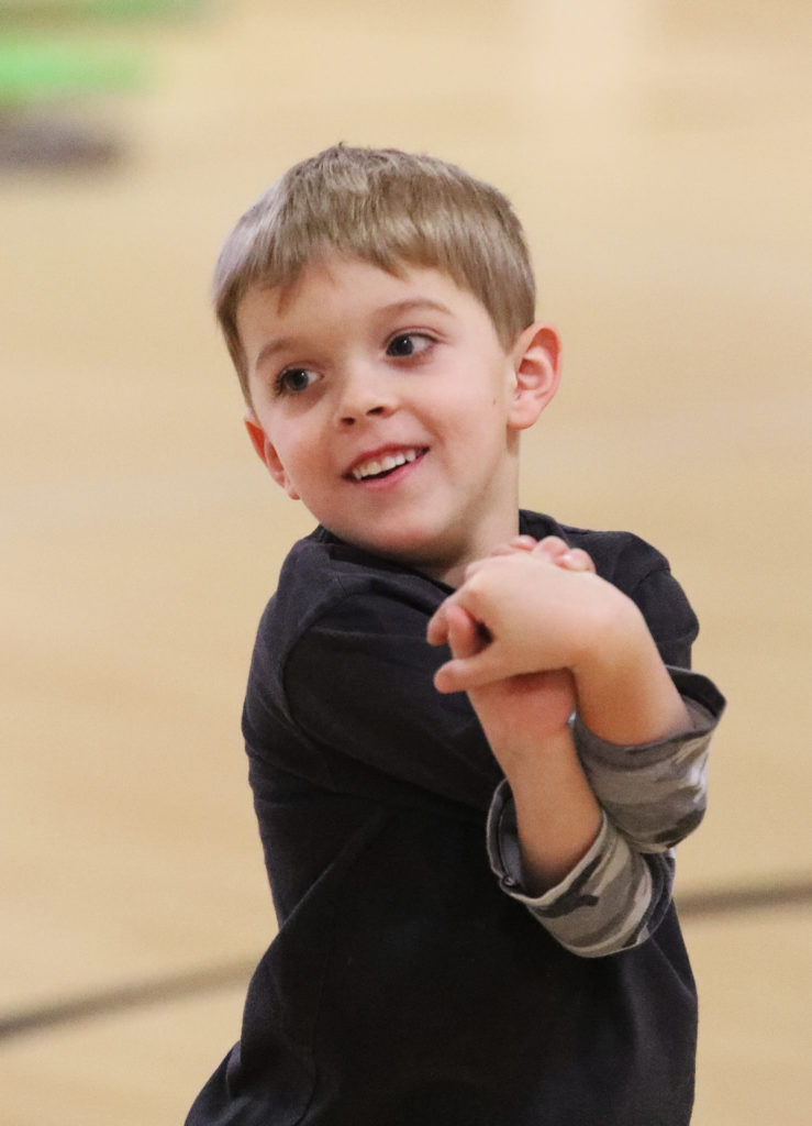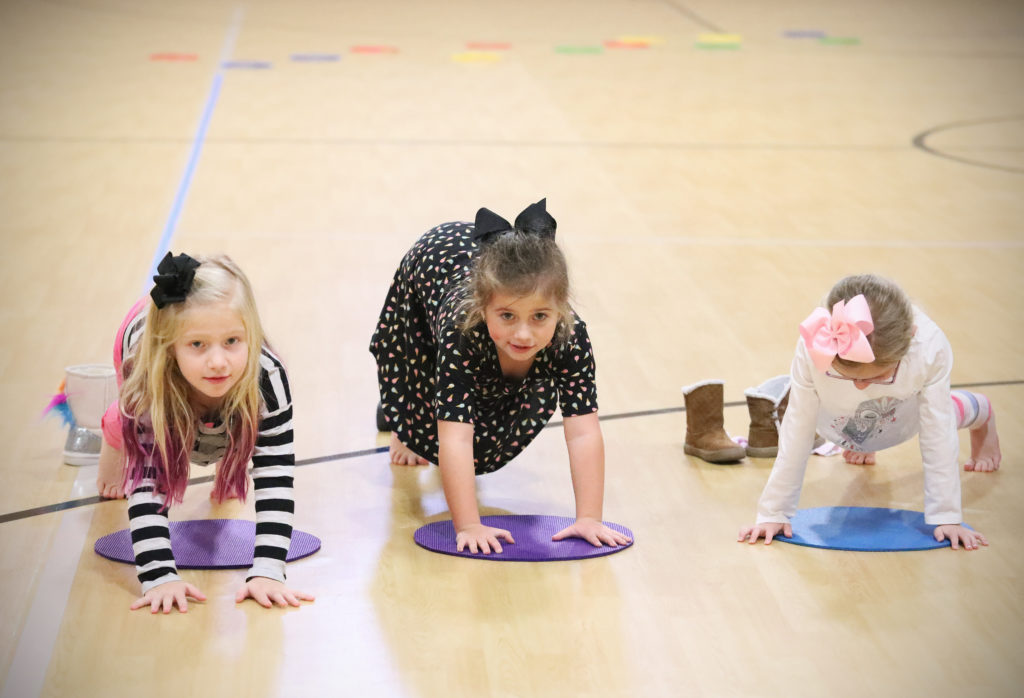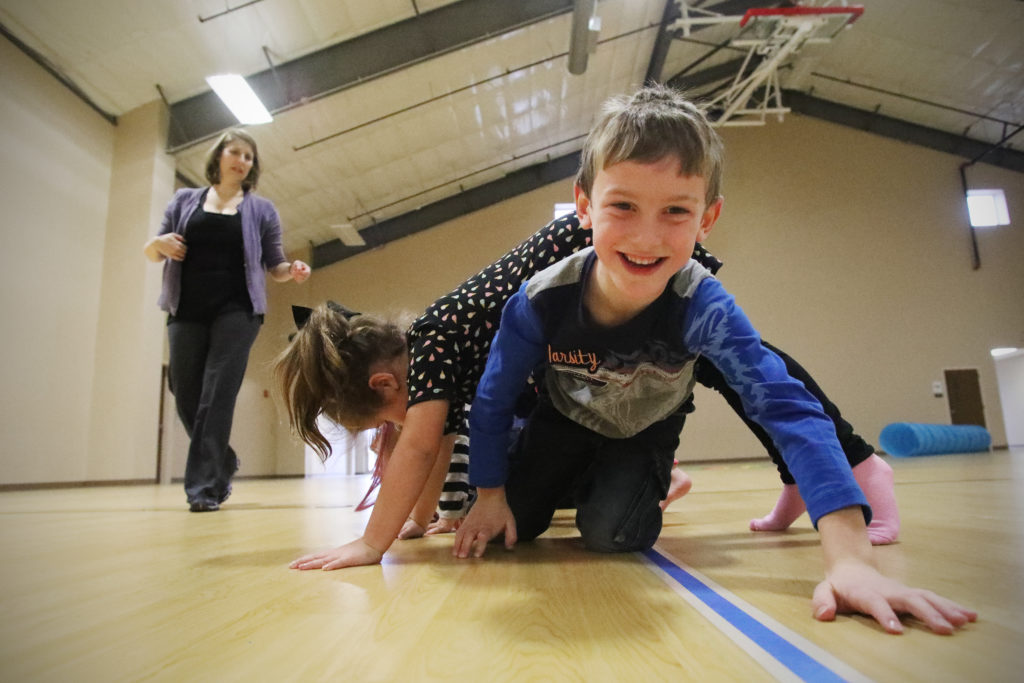 One of the last activities is probably the kiddos’ favorite. The human downward dog tunnel. Now, it probably has some proper name, but that is what I call it. The kids line up next to each other and each one gets down and does the downward dog pose…. then the first kid crawls through the opening all the way through! Each child gets a turn, giggling all the way. Toward the end, you can see the kids wobbling. They’re getting tired of holding themselves up, so they rock back and forth. It’s kinda fun to see the kids get worn out with all the fun they are having.