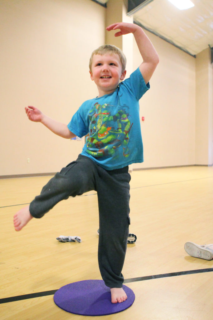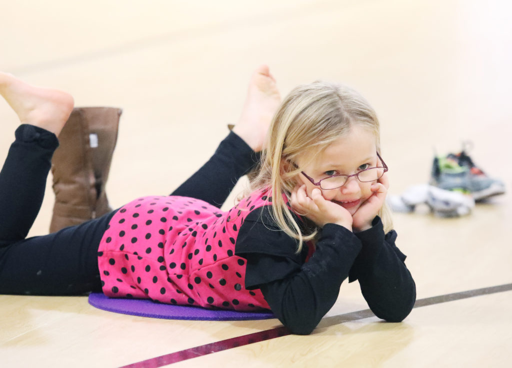 Jen usually ends class on a quiet note — they call it Rest & Relax. Each child lies down and has an eye pillow to put over their eyes (or on their tummy if they don’t like their eyes covered. They listen to a guided visualization or calming music to help them relax.