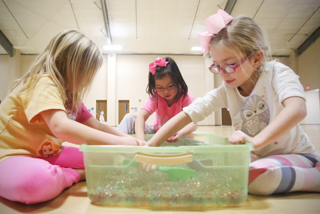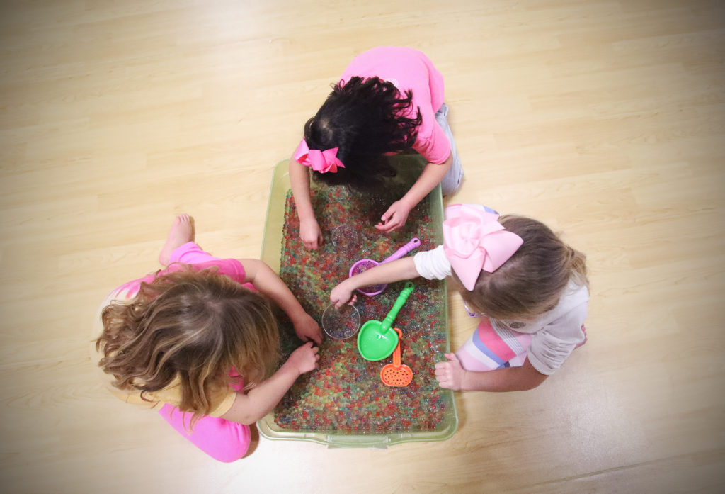 Next is my favorite. Sensory activities. I never really knew about the world of sensory until I met Jen.( I want to tell you that we are close friends and work side-by-side often. ) I wait eagerly for the first reactions the kids have when they put their little fingers and hands in bins of beans, rice or water beads. (You know, those water beads that people use in vases? Well, you can make a sensory bin using them. And I recommend one to EVERYONE!) The little faces light up with glee as they dunk their hands into the bins. There is an occasional snarl, but that’s okay because each sensory bin isn’t made for everybody!